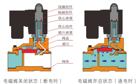 原理:米兰·网站在线官网-米兰(中国)直动式电磁阀分常闭型和常开型两种。常闭型电磁阀断电时为关闭状态,线圈通电时产生电磁力,动铁芯跟静铁芯吸合,电磁阀阀口打开,介质(流体)通过;当电磁阀线圈断电时电磁阀消失,在弹簧的作用力下,电磁阀动铁芯复位,阀口关闭,介质(流体)不同,电磁阀呈关闭状态。常开型与之相反。